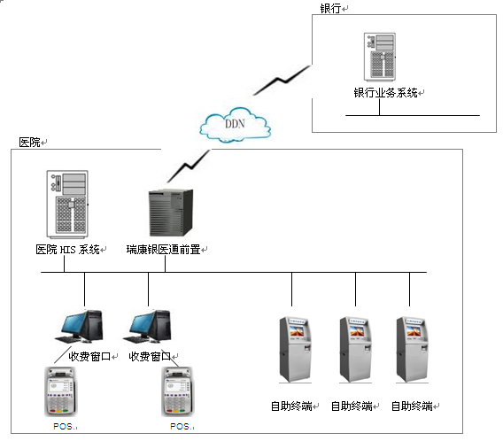 為了滿足各大醫(yī)院日益增長的繳費(fèi)需求,緩解醫(yī)院排隊(duì)繳費(fèi)困境,南京瑞康資訊有限公司提出銀醫(yī)通系統(tǒng)的解決方案,在本方案中銀醫(yī)通包括兩個(gè)部分,一部分是窗口銀行卡收費(fèi),一部分是自助終端銀行卡支付。